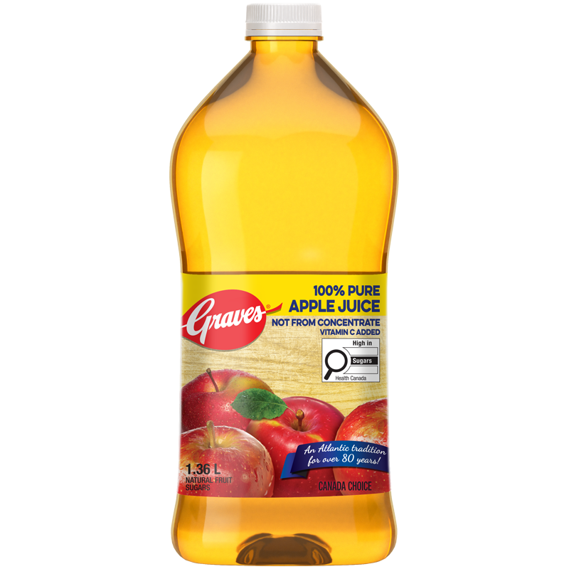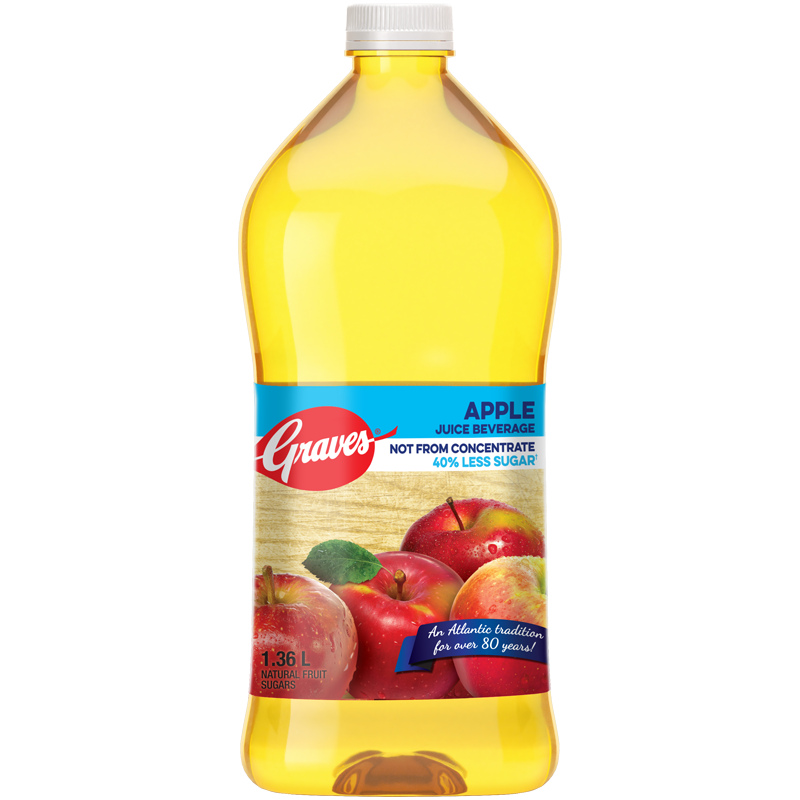 - 40% less sugar : Same great taste as our regular apple juice, our Graves 40% less sugar apple juice beverage is sure to please the whole family! No sweeteners or sugar added.