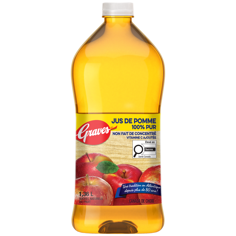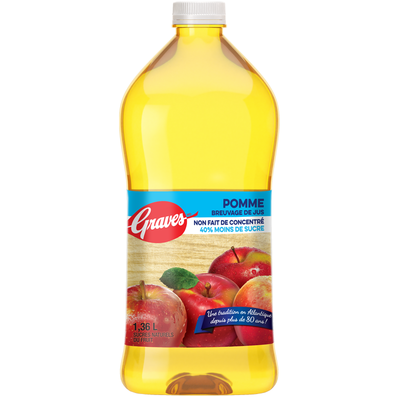 - Même bon goût que notre jus de pomme régulier, le breuvage de jus de pomme Graves 40% moins de sucre plaira à toute la famille ! Sans édulcorant ou sucre ajouté.